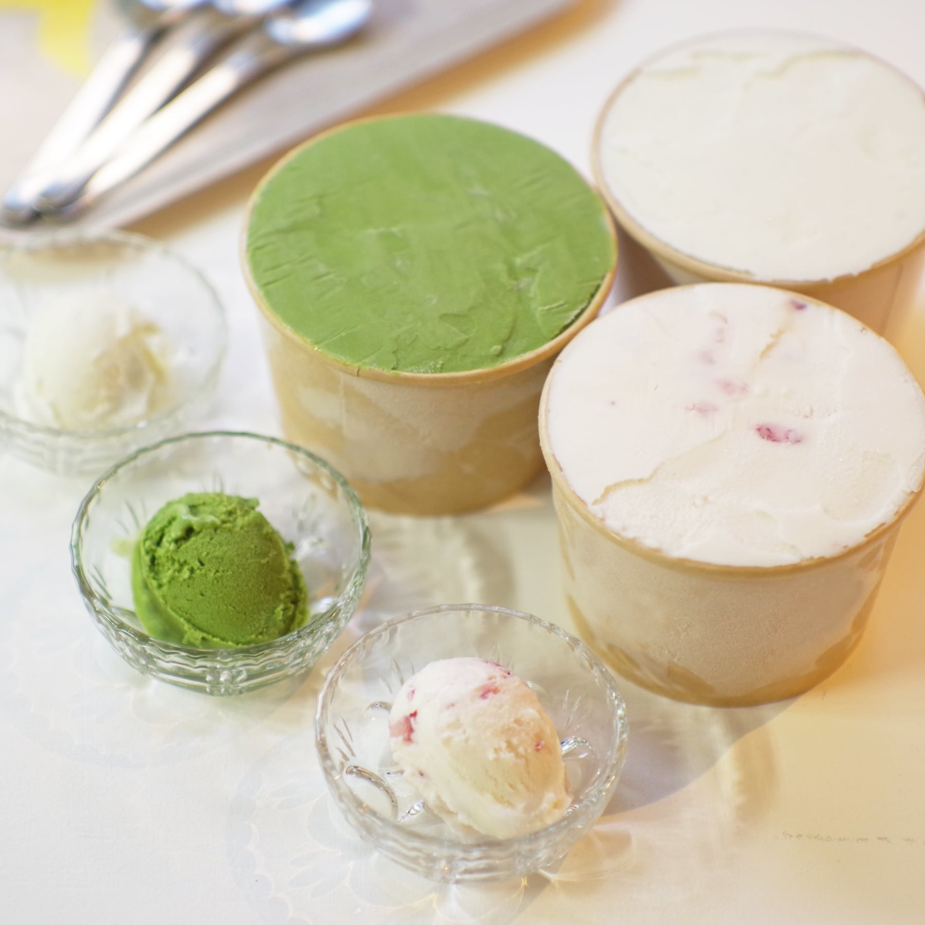 愛知県豊田市の茶園「高香園」の手摘み茶葉が贅沢に入った抹茶「初昔」を使用。